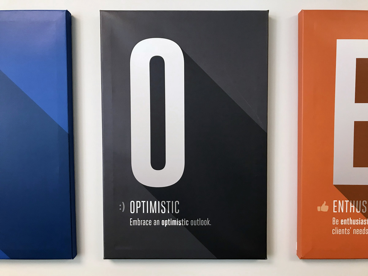 As the Senior Designer and only in-house designer at Intermarkets Inc., I had the rare pleasure of directing and designing some fun projects, one of which is this series of posters for the company's corporate DNA that were printed and mounted on 20 in. x 30 in. stretched canvas.